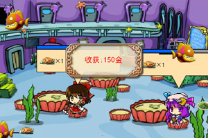 游戏介绍:这是一款东方幻想乡主题的海底餐厅经营小游戏。食物是由运动的鱼来运送的。用鼠标将搬运鱼上的食物拖到对应顾客的对话框上,松开鼠标即可。